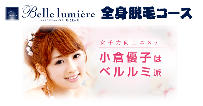 脱毛施術を受けられるエステティックサロンは脱毛専用サロンとフェイシャルエステ、痩身ケアなども受けられる総合エステの2種類に大別できますが、イメージタレントの小倉優子でもお馴染みのベルルミエールは総合エステです。